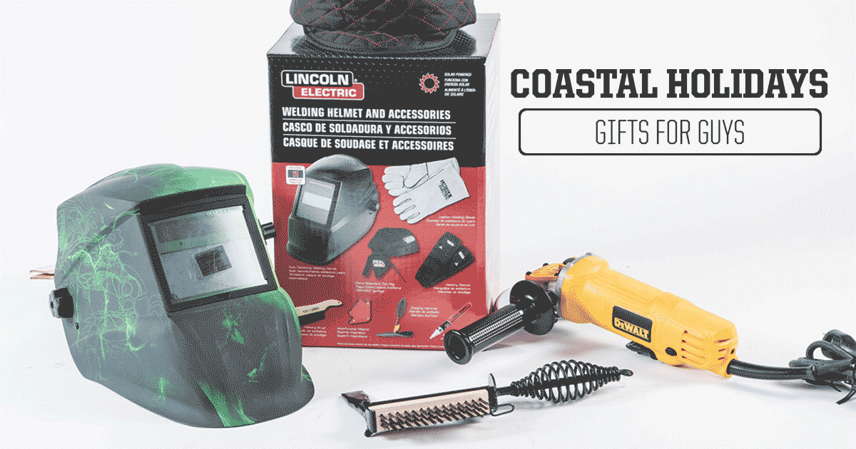 You’ll spot everything your favorite welder needs at Coastal, including Forney Industries Welders Caps and auto darkening Welding Helmets with a 7.7” viewing area and a 2-year warranty (shown with dragon pattern), a DEWALT 4.5” small angle, one-touch grinder, and a chipping hammer with brush. Or get them a pre-packaged box of welding accessories from Lincoln Electric.