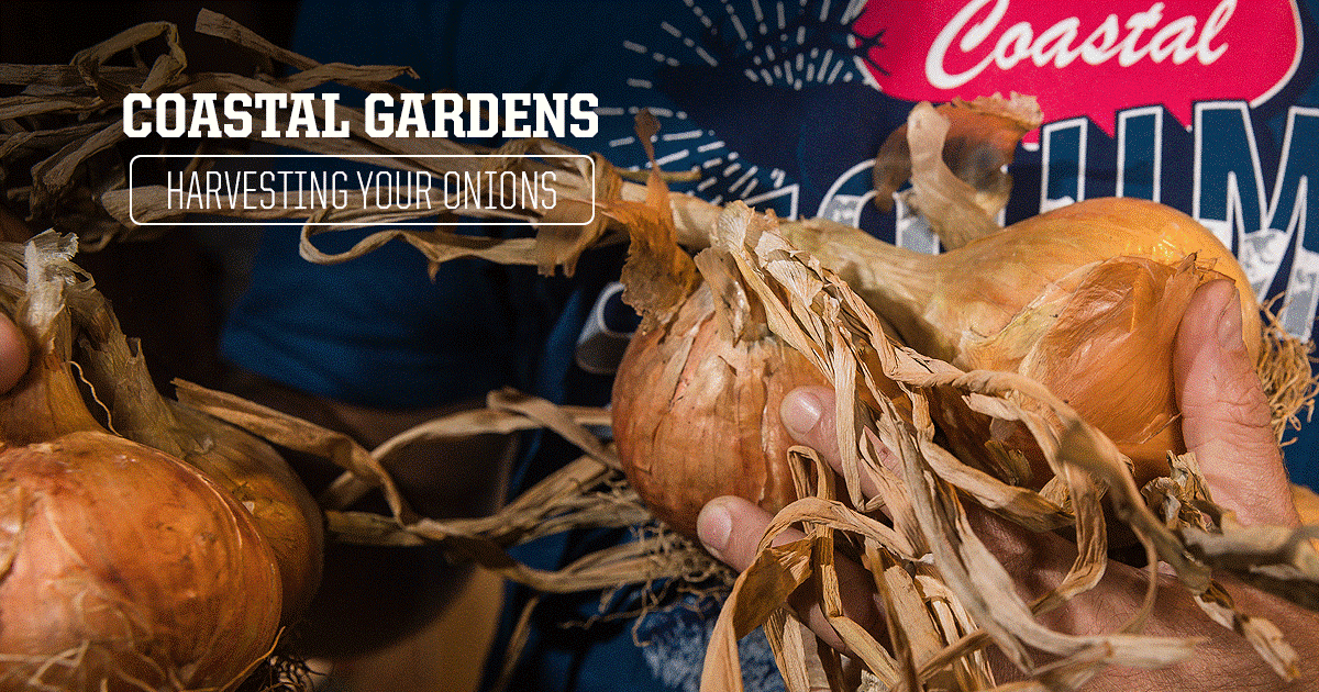 Onions are easy. You can harvest at almost any time and use them right away. When curing, be sure to wait until the tops are falling over and begin to dry out. If you can, stop watering a few weeks before this happens to keep the outer layers from rotting.