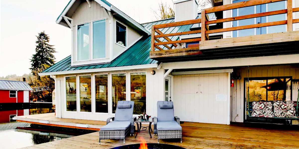 Featured on the Travel Channel, this floating home has a private hot tub, plenty of luxuries, and room for the whole family with 2,500 square feet of living space and over 3,000 square feet of floating cedar deck. Go kayaking, fishing, or simply take in the views and relax on the majestic Willamette River.