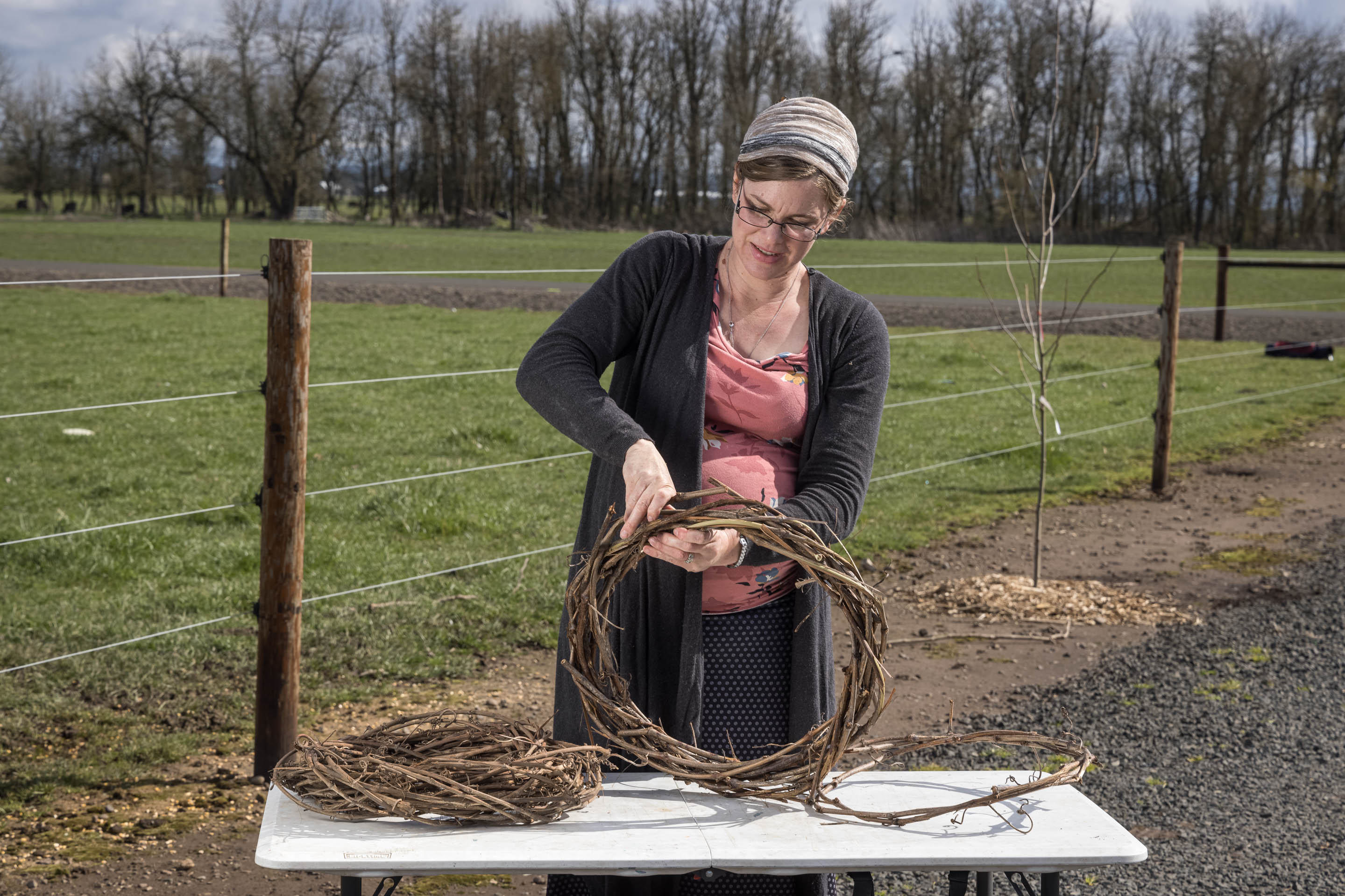 If you don’t have a bunch of grapevines handy, thin willow branches or other vines that are pliable also work as a substitute. The key is to find vines or branches that bend, are easy to work with and shape into a wreath.