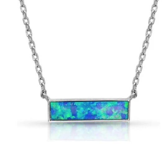 Montana Silversmith Opal Bar NecklaceFlowing with Caribbean colors, this rectangular necklace will quickly become one of her favorites. Features rhodium over a brass base with princess chain attachments at the top of each corner. Shop Now... |