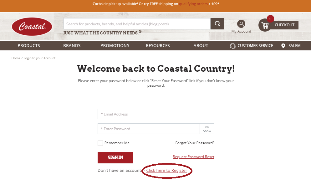 In this section, you can view your current Club Points and Reward Dollars balance (may take up to 48 hours to update after purchase). If you aren’t already a member of our Coastal Country Club rewards program, click here to learn more.