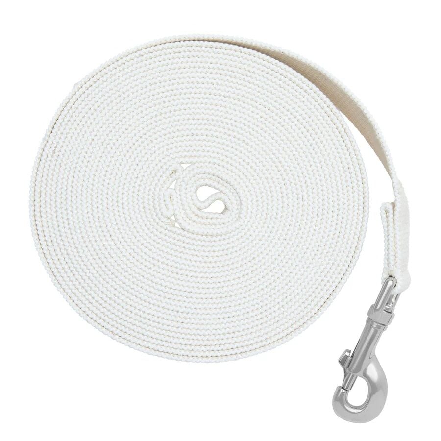 - Off-white cotton lunge line offers a comfortable, soft feel that helps reduce the chance of uncomfortable rope burns